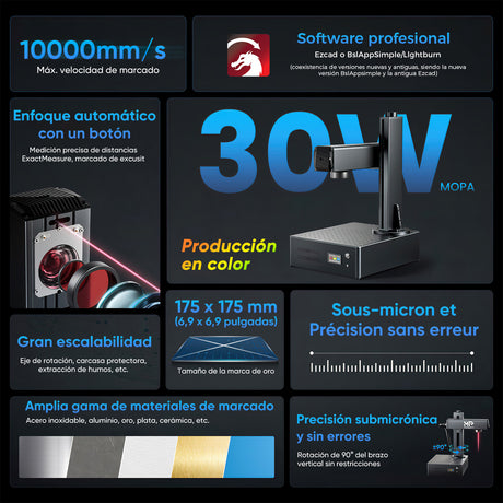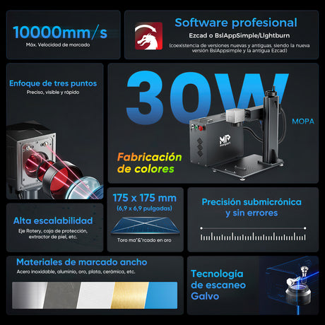 Grabador y marcador laser de fibra Monport 30W (175 x 175 mm) GPro MOPA con enfoque manual