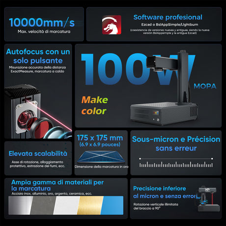 Grabador y marcador láser de fibra MOPA GPro de 100W (175x175mm) Monport con enfoque manual
