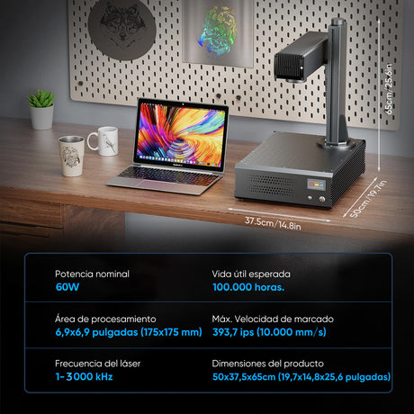 Grabador láser de fibra Monport de 50W (7.9"x7.9") y máquina de marcado