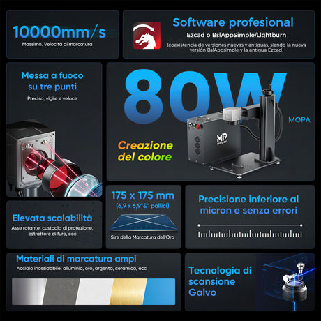 Grabador y marcador láser de fibra MOPA Monport 80W (175x175mm) GPro con enfoque manual