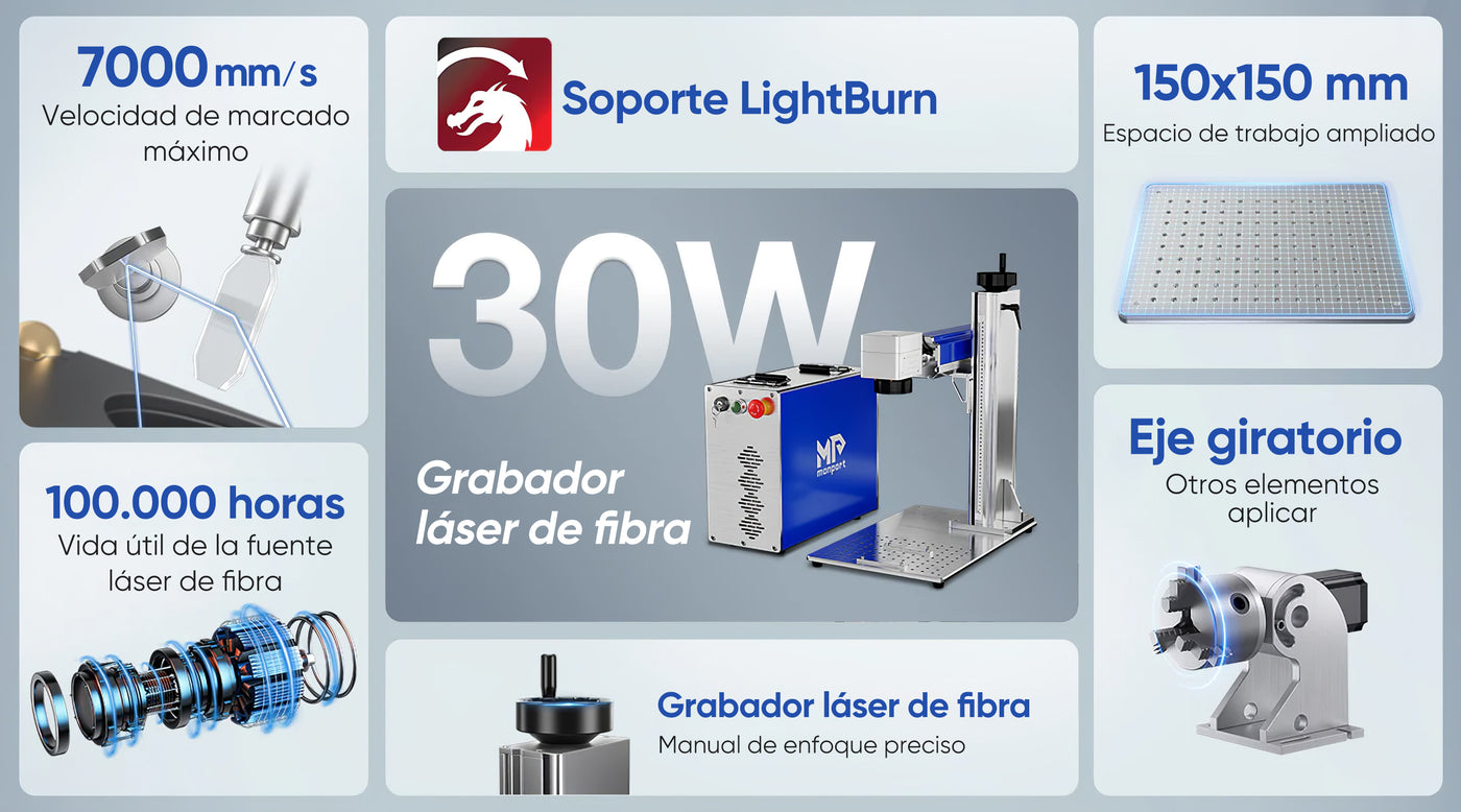 Grabador láser de fibra Monport de 30W (5.9"x5.9") y máquina de marcado