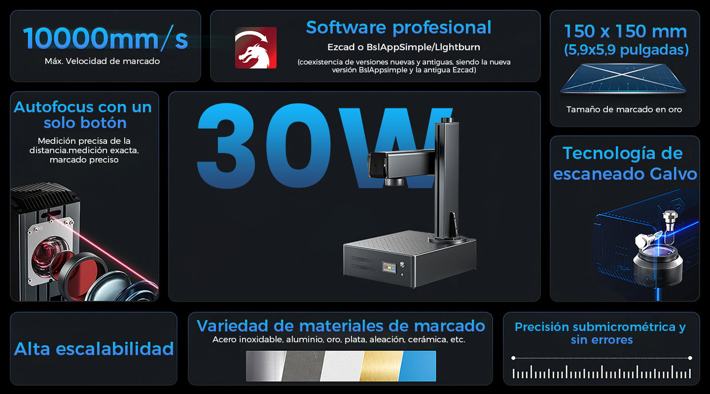 | Potencia láser | 20W | 30W | 50W |