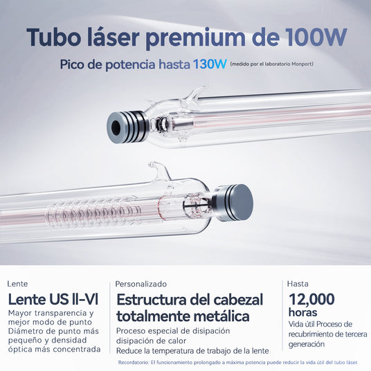 Después de actualizar el tubo láser (lente US II-VI, estructura de cabezal totalmente metálica), la potencia máxima medida por Effi10S puede alcanzar hasta 130 W, lo que mejora en gran medida su eficiencia de procesamiento y le permite cortar materiales más gruesos. Por ejemplo, al cortar acrílico de 20 mm de espesor, la eficiencia es más de cinco veces mayor que la de una máquina de escritorio de 55 W de una determinada marca X. Por supuesto, además de mejorar el rendimiento del producto, Monport también garantiza una aplicabilidad económica, con una vida útil del tubo láser de hasta 12.000 horas.