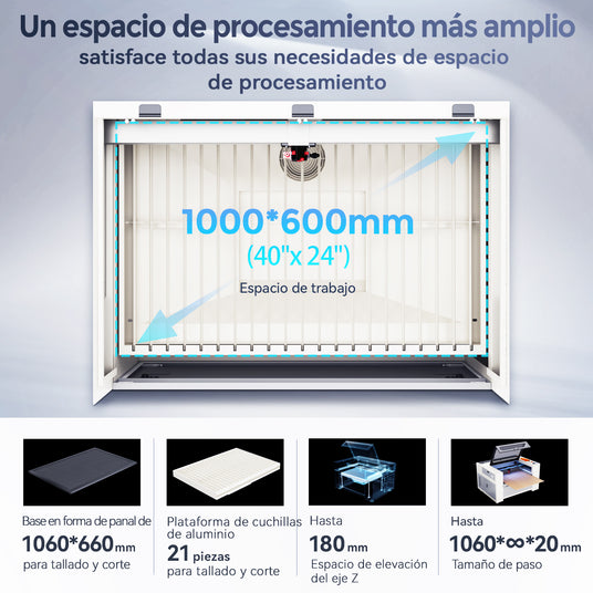 Área de grabado: 1000 x 600 mm (40 x 24 pulgadas)