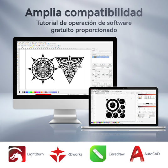 Tanto Lightburn como RDWorks se adaptan perfectamente a esta gama de productos. Con la compatibilidad de RDWorks, puede utilizarlo junto con software de dibujo como CorelDRAW (CDR) y AutoCAD (CAD).