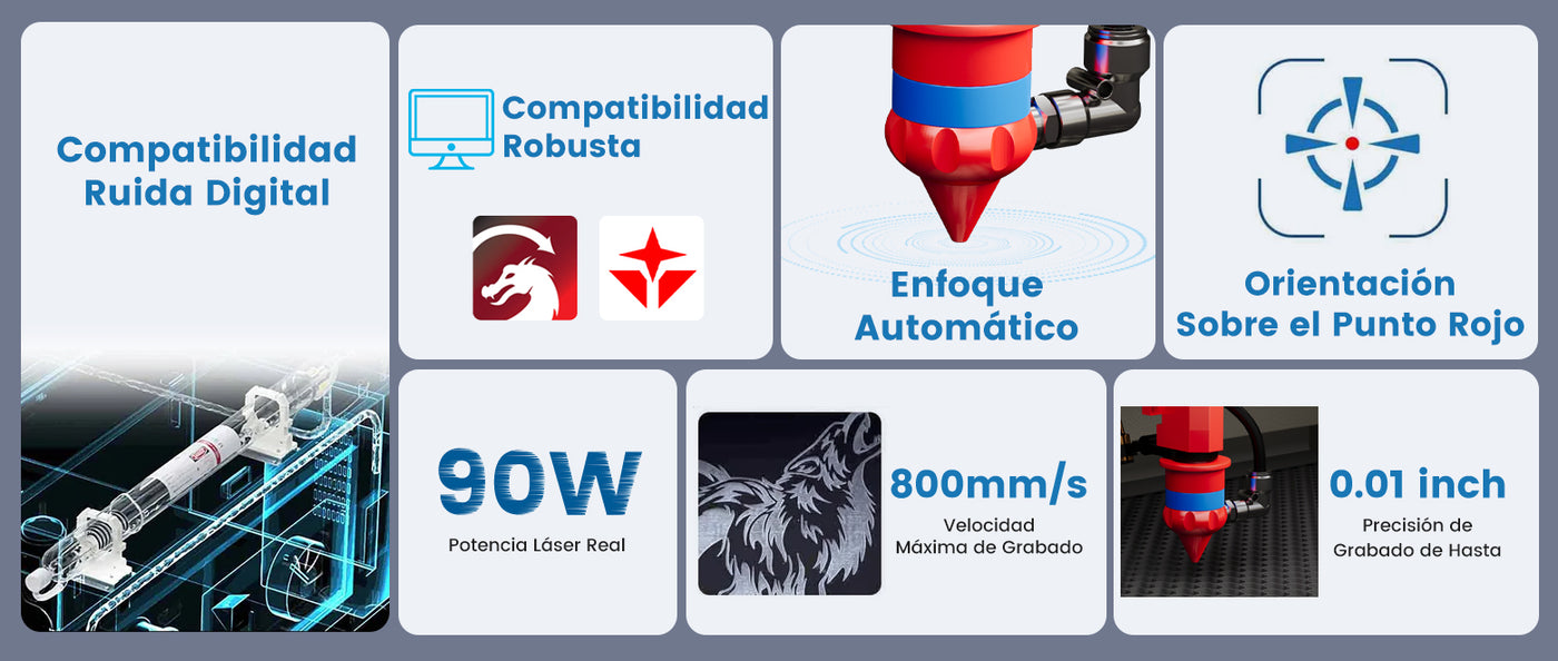 Aumente su eficacia y consiga velocidades de grabado impresionantes con nuestra máquina de grabado láser de 90 W. Nuestra máquina permite un grabado rápido y preciso en una amplia gama de materiales.