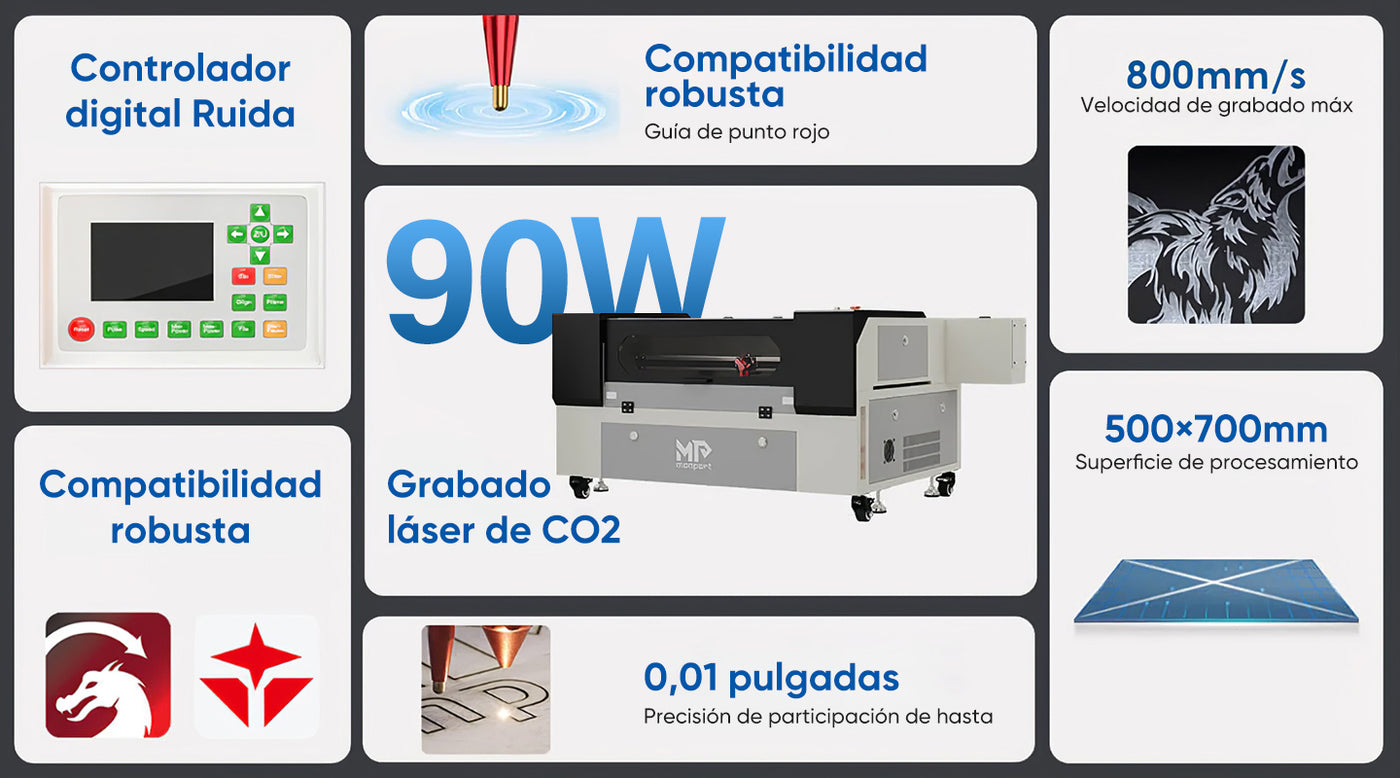 Máquina de grabado y corte láser CO2 Monport 90W (500x700mm) con enfoque automático